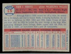 1957 Topps Baseball Card (#15) of Philadelphia Phillies Hall-of-Fame Pitcher, Robin Roberts. Card is EX+ with some corner wear and no creases. No writing, pin holes, tape stains. See scan for centering