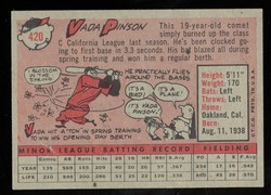 1958 Topps Baseball Rookie Card (#420) of former Cincinnati Reds Star Outfielder, Vada Pinson.