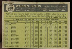 1961 Topps Baseball #200 Warren Spahn Milwaukee Braves HOF