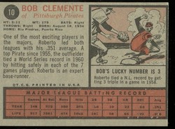 1962 Topps Baseball #010 Roberto Clemente Pittsburgh Pirates HOF