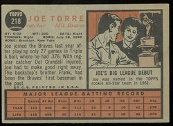 1962 Topps Baseball #218 Joe Torre Rookie Milwaukee Braves HOF