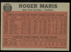 1962 Topps Baseball In Action Blasts 61st Card (#313) of Former New York Yankees Star Outfielder, Roger Maris.