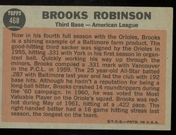 1962 Topps Baseball All-Star Card (#468) of Baltimore Orioles Hall-of-Fame 3rd Baseman, Brooks Robinson.