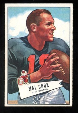 1952 Bowman Football Rookie Card (#87) of Chicago Cardinals Quarterback, Mal Cook. Card is EX-MT with some light corner wear and no creases. Wax stain on back. See scan for centering.