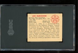 1950 Bowman Baseball Card (#220 - No copyright line) of New York Giants Hall-of-Fame Manager, Leo Durocher. Card is graded 6 EX-MT (Excellent to Mint) by SGC.