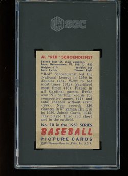 1951 Bowman Baseball #010 Red Schoendienst SGC 7 St Louis Cardinals HOF