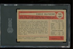 1954 Bowman Baseball Card (#64) of Milwaukee Braves Hall-of-Fame 3rd Baseman, Eddie Mathews. Card is graded 7 NM (Near Mint) by SGC.