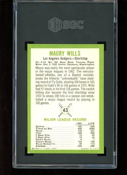 1963 Fleer Baseball #043 Maury Wills Rookie SGC 8 Los Angeles Dodgers
