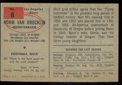 1954 Bowman Football Card (#8) Of Los Angeles Rams Hall-of-Fame Quarterback, Norm Van Brocklin.
