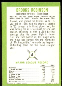 1963 Fleer Baseball #004 Brooks Robinson Baltimore Orioles HOF
