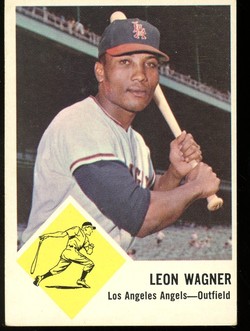 1963 Fleer Baseball Card (#21) of Los Angeles Angels Outfielder, Leon Wagner. Card is EX with some corner wear and no creases. No writing, pin holes, tape stains. See scan for centering.