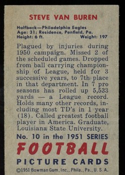 1951 Bowman Football #010 Steve Van Buren Philadelphia Eagles HOF