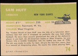 1961 Fleer Football Card (#74) Of New York Giants Hall-of-Fame Linebacker, Sam Huff.