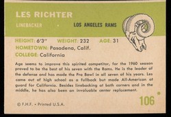 1961 Fleer Football #106 Les Richter Los Angeles Rams HOF