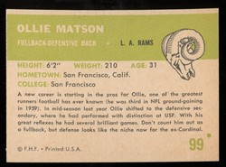 1961 Fleer Football Card (#99) Of Los Angeles Rams Hall-of-Fame Running Back, Ollie Matson.