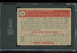 1952 Topps Baseball Card (#119) of Former Boston Red Sox Pitcher, Maurice McDermott. Card is EX is graded 6 EX-MT (Excellent to Mint) by SGC.