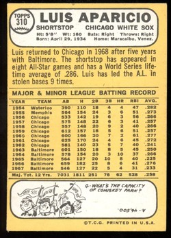 1968 Topps Baseball #310 Luis Aparicio Chicago White Sox HOF
