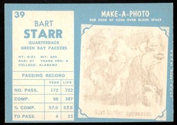 1961 Topps Football #039 Bart Starr Green Bay Packers HOF