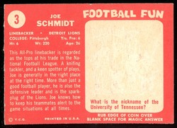 1958 Topps Football Card (#3) Of Detroit Lions Hall-of-Fame Linebacker, Joe Schmidt.