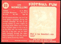 1958 Topps Football Card (#89) Of San Francisco 49'ers Hall-of-Fame Defensive Tackle, Leo Nomellini.