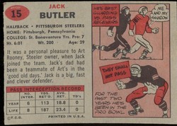 1957 Topps Football Rookie Card (#15) Of Pittsburgh Steelers Hall-of-Fame Defensive Back, Jack Butler.