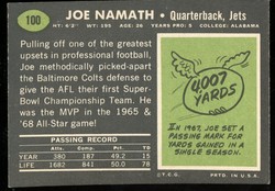1969 Topps Football #100 Joe Namath New York Jets HOF