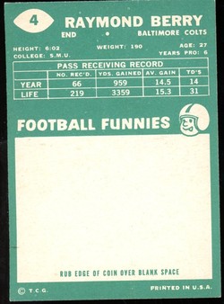 1960 Topps Football #004 Ray Berry Baltimore Colts HOF