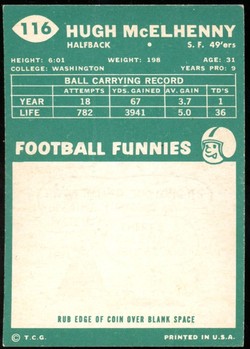 1960 Topps Football #116 Hugh McElhenny San Francisco 49'ers HOF