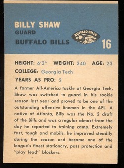 1962 Fleer Football Card (#16) of Buffalo Bills Hall-of-Fame Guard, Billy Shaw.