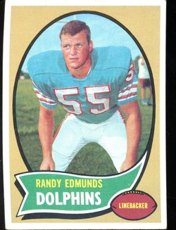 1970 Topps Football Card (#34) Of Miami Dolphins Linebacker, Randy Edmunds.