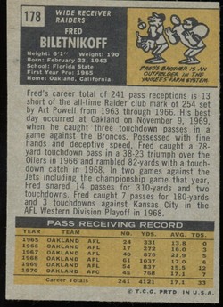1971 Topps Football #178 Fred Biletnikoff Oakland Raiders HOF
