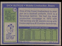 1972 Topps Football #170 Dick Butkus Chicago Bears HOF