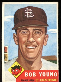 1953 Topps Baseball #160 Bob Young St Louis Browns - Black Bio